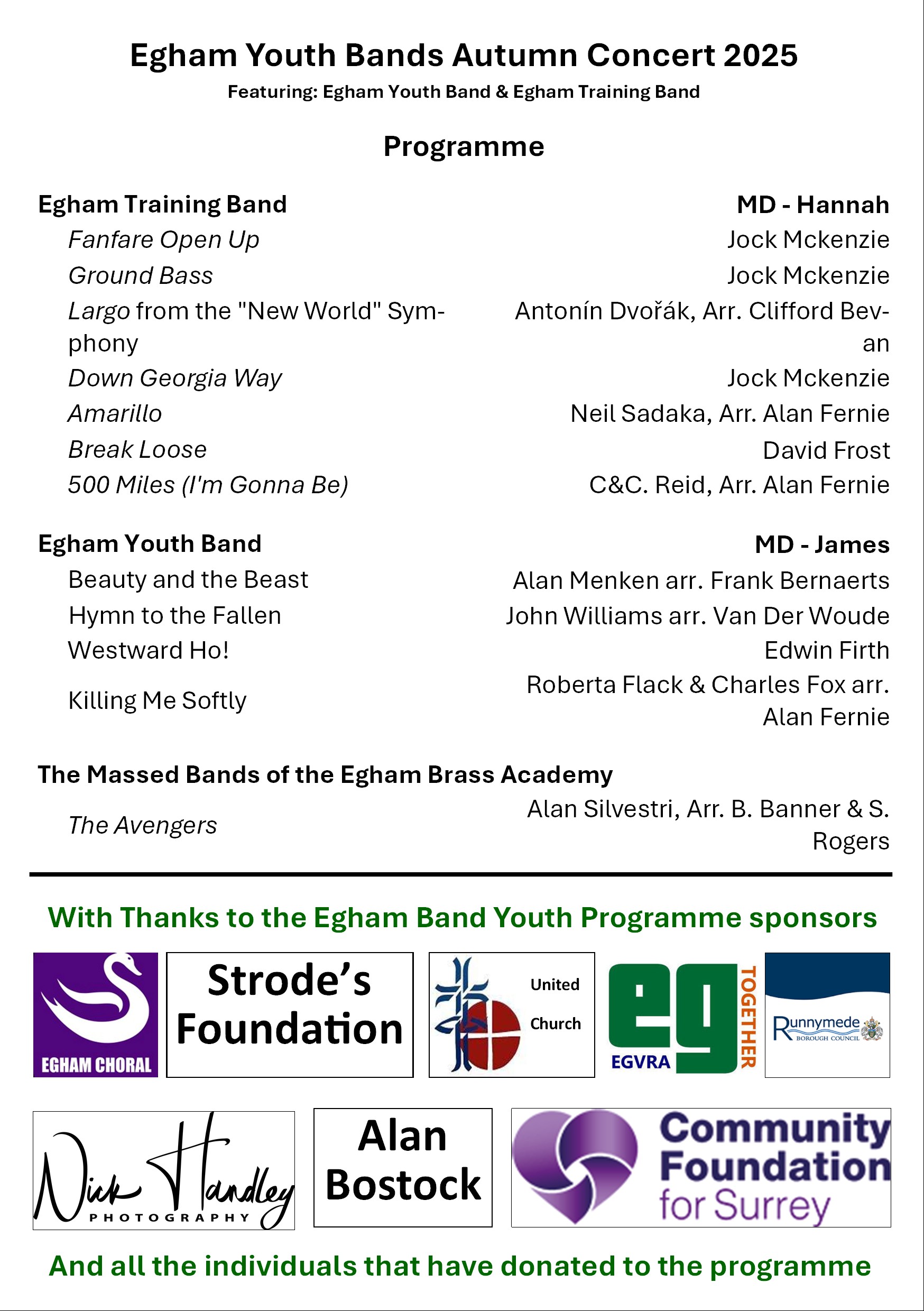 Egham Youth Bands Autumn Concert Programme